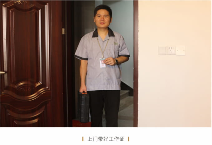 必須按照客戶約定,至少提前5分鐘上門,見到客戶時需自我介紹,并出示上崗證和名片,在進入顧客家前應穿上自備的鞋套。征得客戶同意后開始維修,嚴禁亂收費。